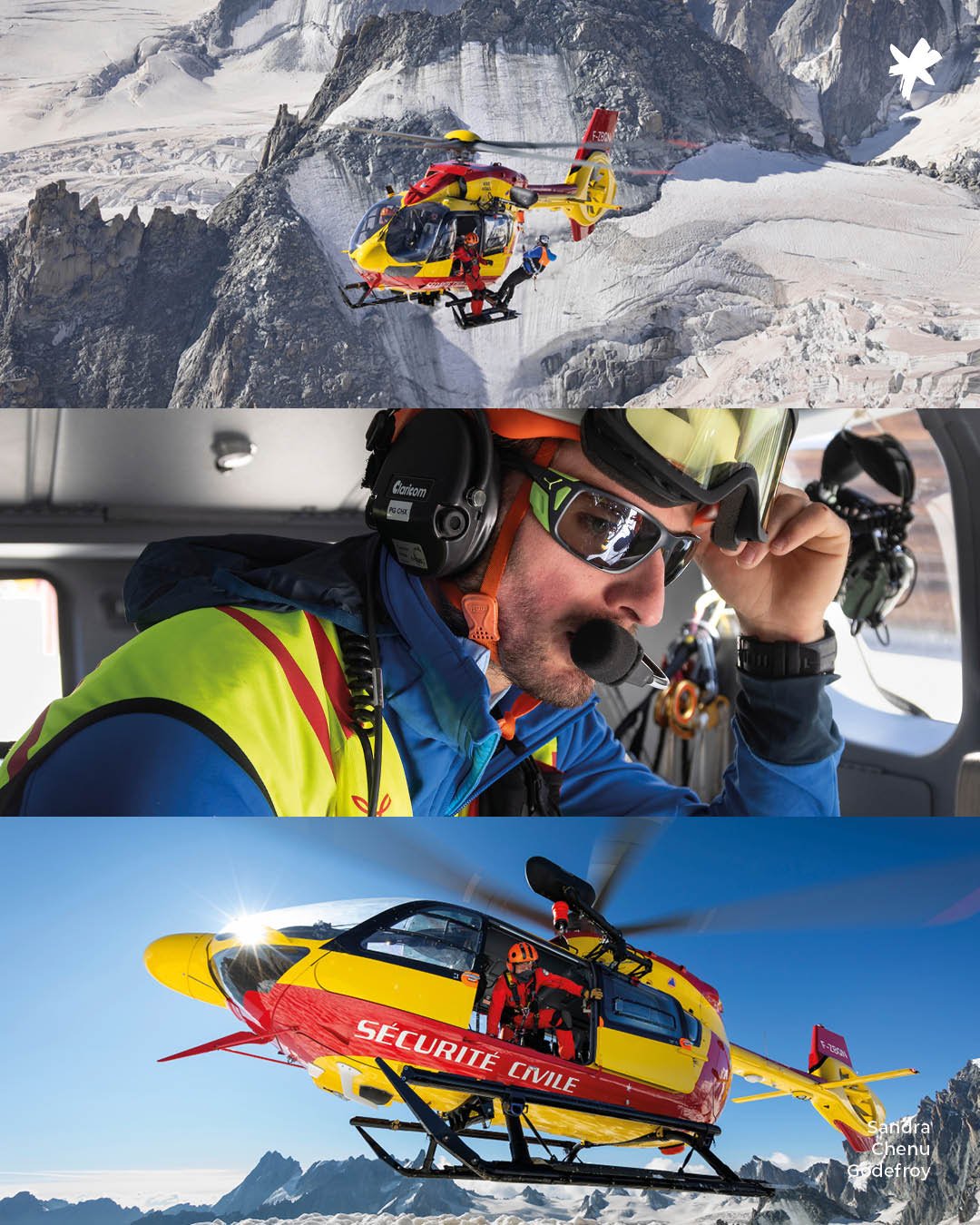 Impossible de penser à la montagne sans penser aussi à tous ceux qui veillent sur ceux qui la pratiquent. Je suis donc allée piocher parmi mes reportages consacrés au secours en montagne -il y en a !-) ce sujet réalisé à l’été 2022 en Savoie auprès des équipages du très moderne H145 de la Sécurité Civile. Nous avions eu la chance de pouvoir profiter d’une météo magnifique qui faisait claquer le jaune de la livrée de l’hélico et des gilets de travail du PGHM sur le bleu intense du ciel et des glaciers… Mais je n’oublie pas que le plus souvent, leurs sorties se font dans des conditions nettement moins clémentes !