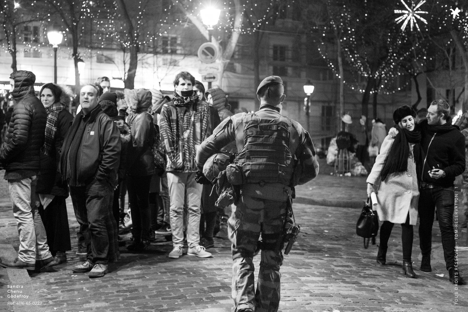 Un soir de réveillon à Paris à suivre une patrouille de légionnaires sur la butte Montmartre. Une froide nuit d'hiver, quelques minutes avant le passage à la nouvelle année: une file de touristes et de parisiens qui font la queue pour s'offrir une crêpe ou un chocolat chaud à partager entre amis ou amoureux… les sentinelles qui marchent au milieu des décorations festives, la file qui s'écarte pour les laisser passer, quelques timides sourires...